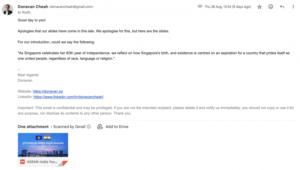 But I think what I remember most from our presentation was how we wanted to show that Singapore is interdependent on ASEAN. To that, we thanked all our other ASEAN and Indian delegates too.