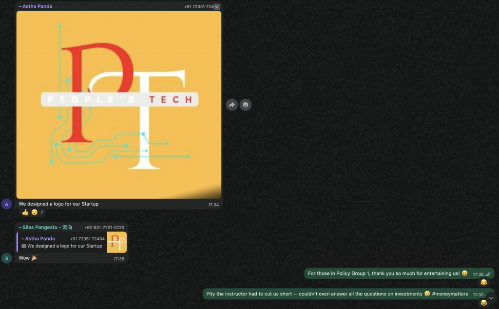 As youth delegates, we were also there to learn, both formally and informally. The most fun policy group in my view was the one on role-playing start-ups, led by Dr Rupa Vasudevan, Chancellor of BEST Innovation University.