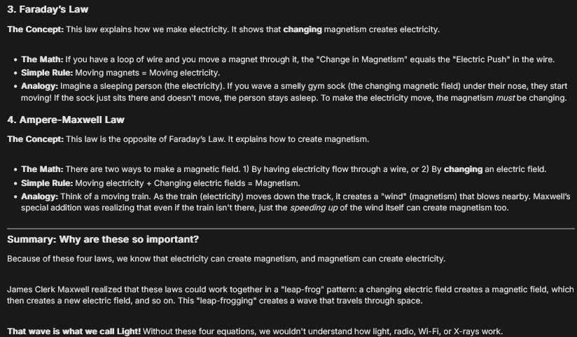 But a child left unsupervised might read this fully and may even generate some AI slop trying to over-simplify Maxwell’s equations with confusing analogies.