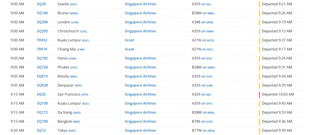 Here, we support two points: SQ operates connections for India-Singapore-US flights, judging by how connection times from India – Singapore to Singapore – US flights (trivia: SQ12 is a SIN-NRT-LAX route, so that’s also included in the pool of US flights) are timed for connection times of between 1.5 hours to 3 hours. Next, we also highlight the “massive departure” banks all over Southeast Asia from this screenshot.
